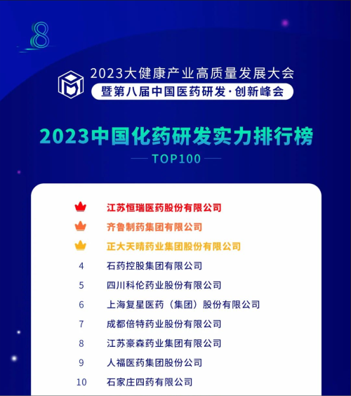 恒峰g22医药连续6年蝉联《中国药品研发综合实力排行榜》榜首
