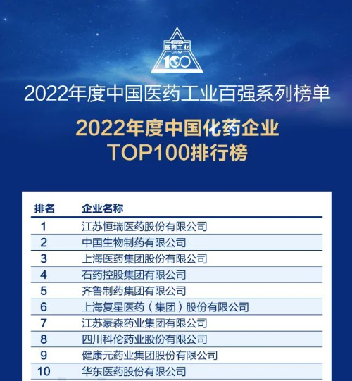 佳音频传!恒峰g22医药再次蝉联中国化药企业百强榜首